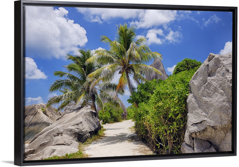 <p>Footpath through Rocks and Palm Trees, Anse Source doArgent, La Digue, Seychelles</p>
