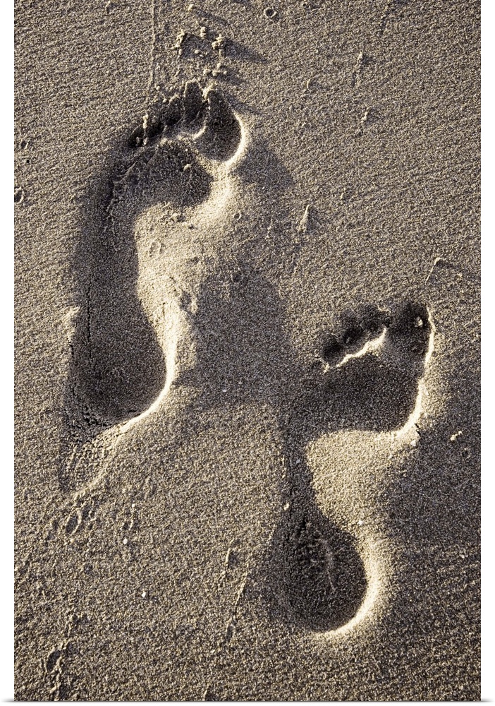 <p>Two footprints in the sand of a beach</p>