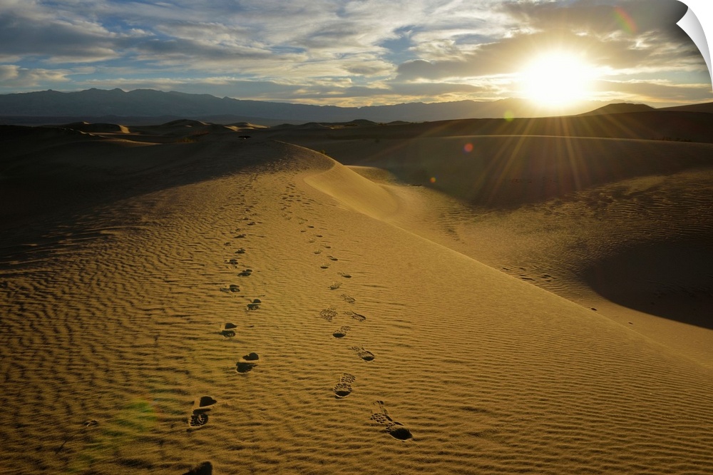 <p>USA, California, Death Valley, Footprints on the dunes at the Mesquite Flat Sand Dunes.</p>