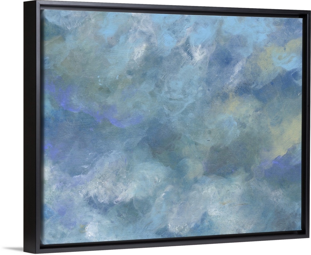 <p>Contemporary painting of a cloudy sky in shades of blue and grey.</p>