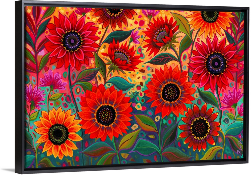 Art Contemporary Art Peggy Davis Florals Sunflower Painting Red Wall Art
