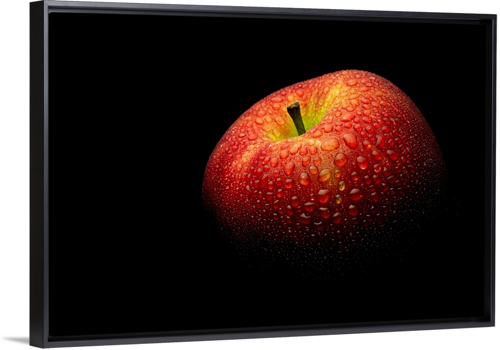 <p>A close up photograph of a fresh Honeycrisp apple with waterdrops.</p>