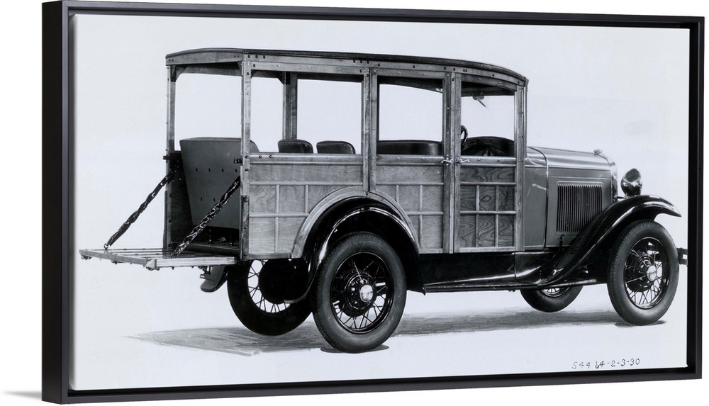 <p>Photo shows a Ford Model A station wagon; a Woody. Photograph, ca. 1900s-1910s.</p>