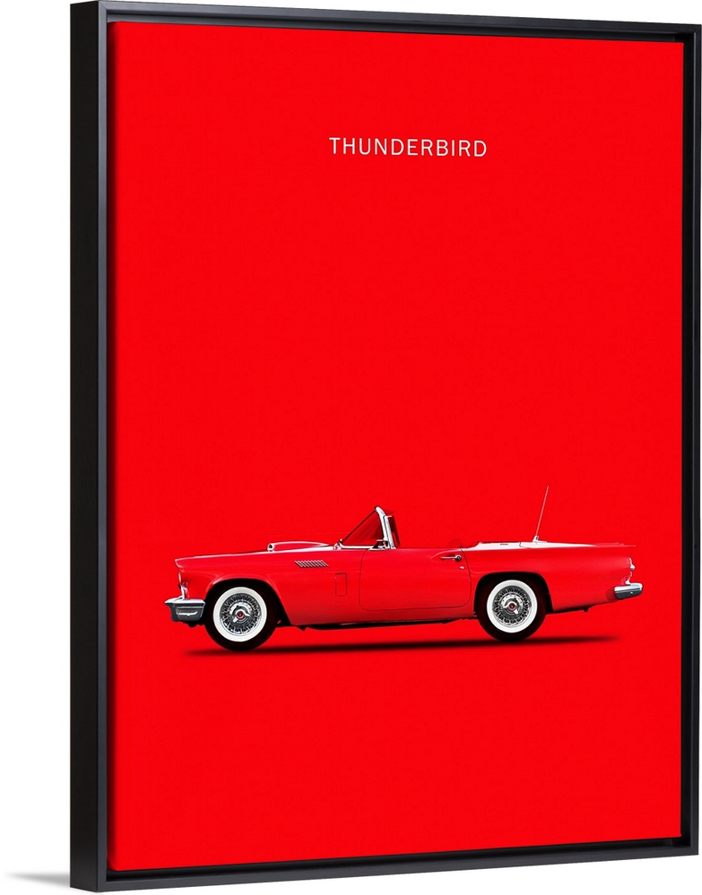 <p>Photograph of a red Ford Thunderbird 1957 printed on a red background</p>