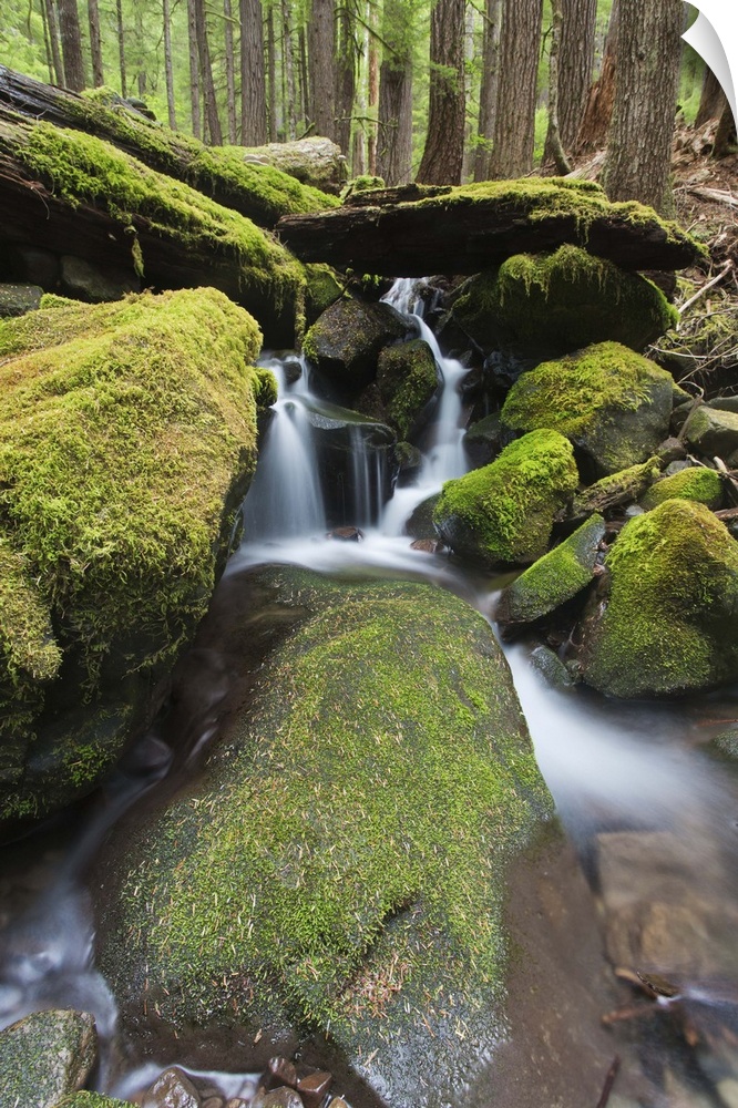 <p>stream, waterfall and temperate forest</p>