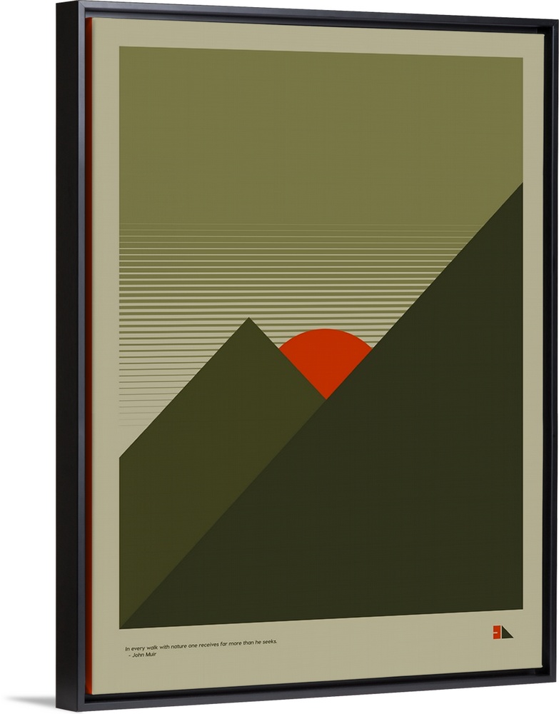 <p>Modern graphic poster representing a forest and mountain landscape with the quote "In every walk with nature one receives far more than he seeks." -John Muir, written at the bottom.</p>