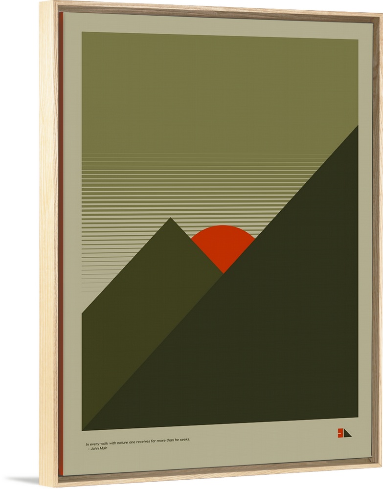 <p>Modern graphic poster representing a forest and mountain landscape with the quote "In every walk with nature one receives far more than he seeks." -John Muir, written at the bottom.</p>