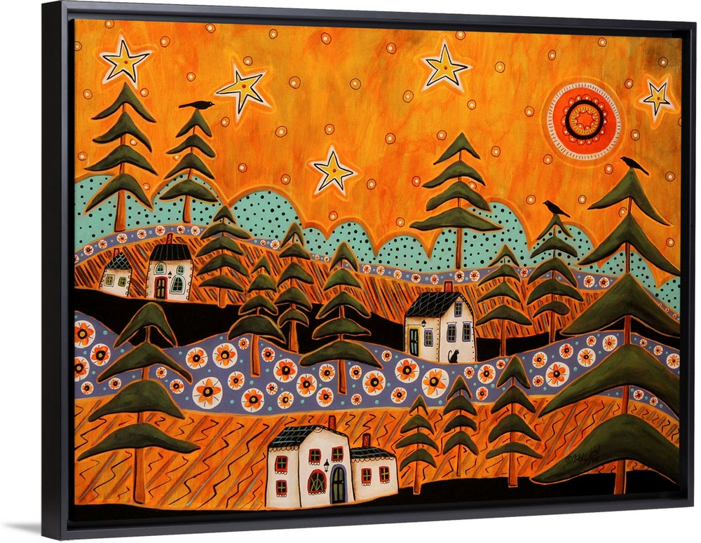 <p>A contemporary folk art style painting of a rolling countryside landscape.</p>