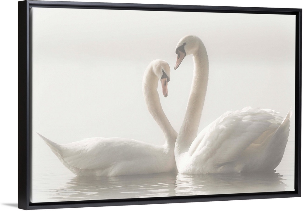 <p>Two Mute Swans swim closely together, their arched necks creating the image of a heart.</p>