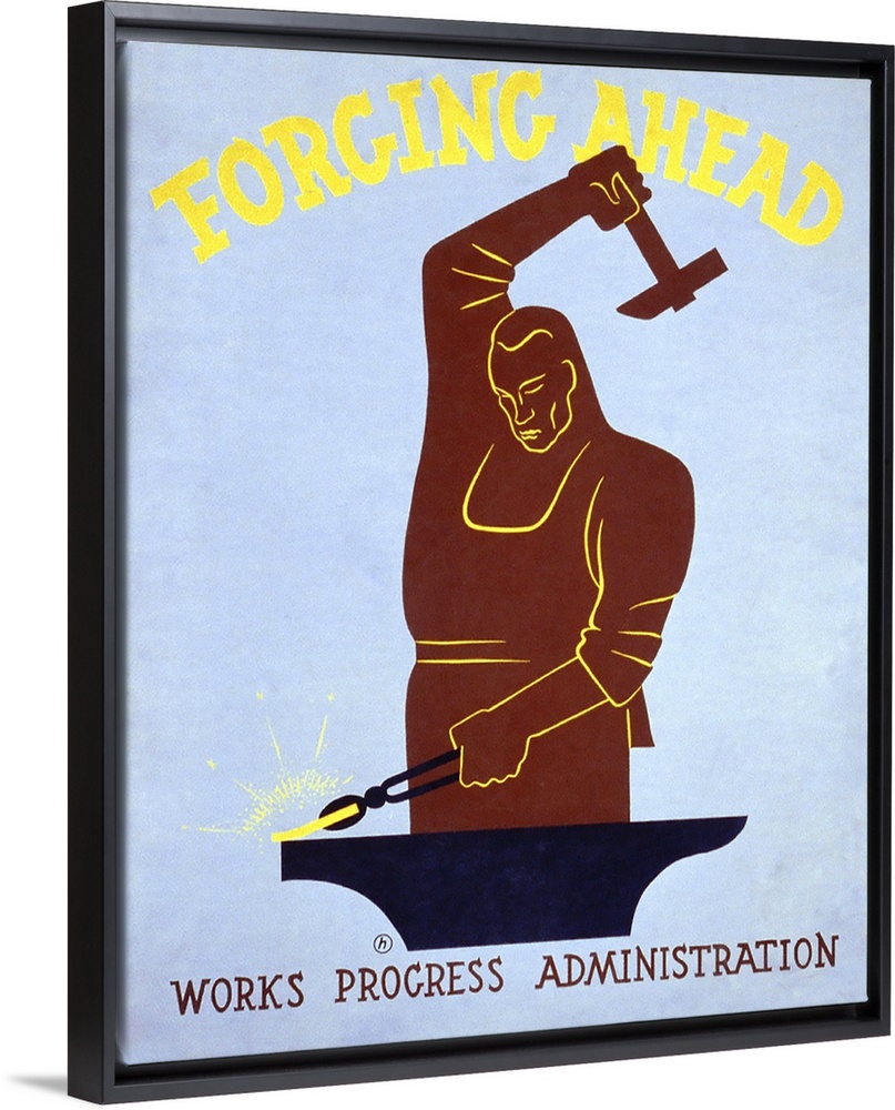 <p>Forging Ahead, Works Progress Administration. Poster for Works Progress Administration encouraging laborers to work for America, showing blacksmith. Library of Congress, Prints and Photographs Division, WPA Poster Collection.</p>