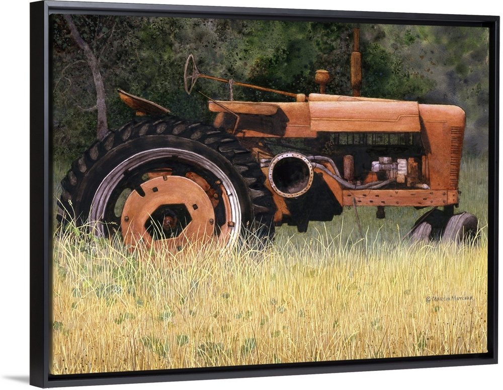 <p>Illustration of an old red tractor forgotten in a field.</p>