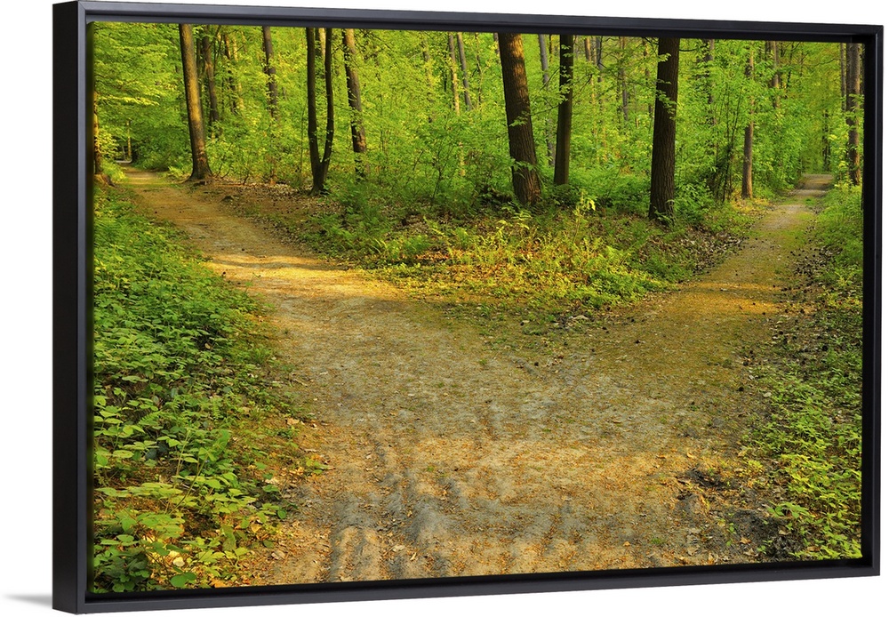 <p>Forked Forest Path in the Spring, Hallerbos, Halle, Vlaams Gewest, Brussels, Belgium, Europe</p>