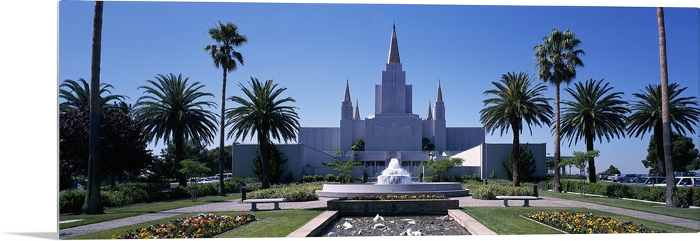<p>Formal garden in front of a temple, Oakland Temple, Oakland, Alameda County, California, USA</p>