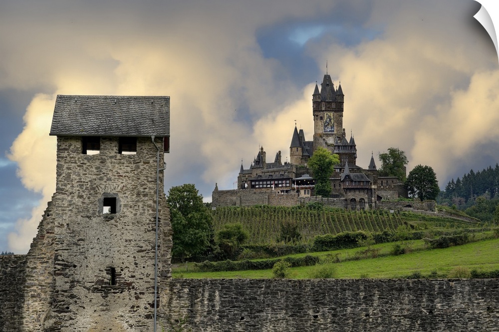 <p>Former Imperial Castle overlooking the city of Cochem, Rhineland Palatinate, Germany, Europe</p>