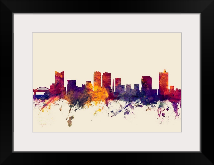 <p>Contemporary artwork of the Fort Worth city skyline in watercolor paint splashes.</p>