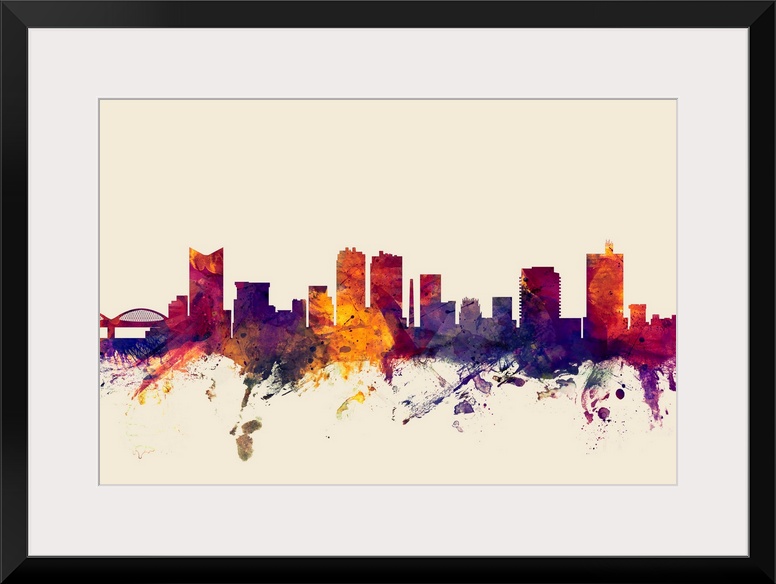 <p>Contemporary artwork of the Fort Worth city skyline in watercolor paint splashes.</p>