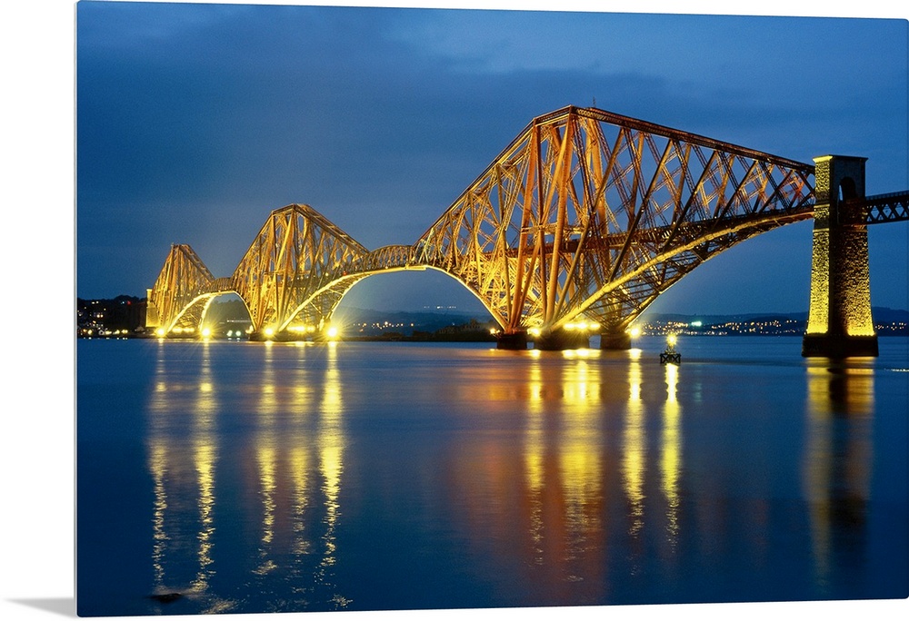 <p>Forth Rail Bridge illuminating Queensferry, Edinburgh, Scotland</p>