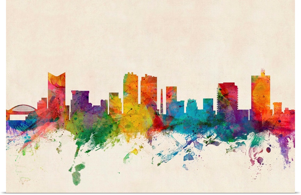 <p>Contemporary piece of artwork of the Fort Worth skyline made of colorful paint splashes.</p>