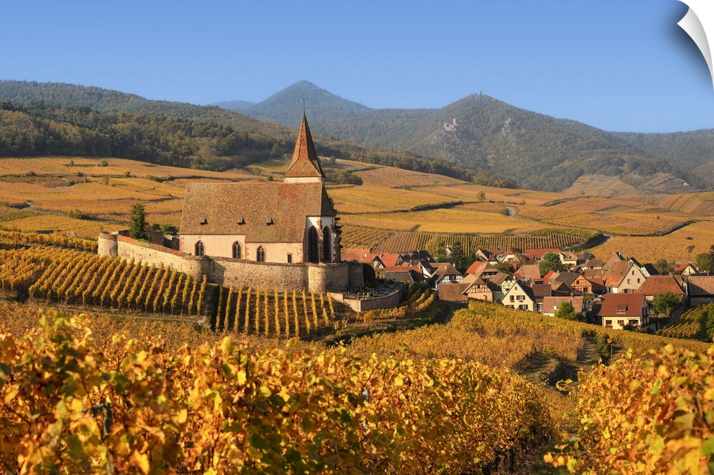 <p>Fortified church of Saint Jacques, Hunawihr, Alsace, Alsatian Wine Route, Haut-Rhin, France.</p>