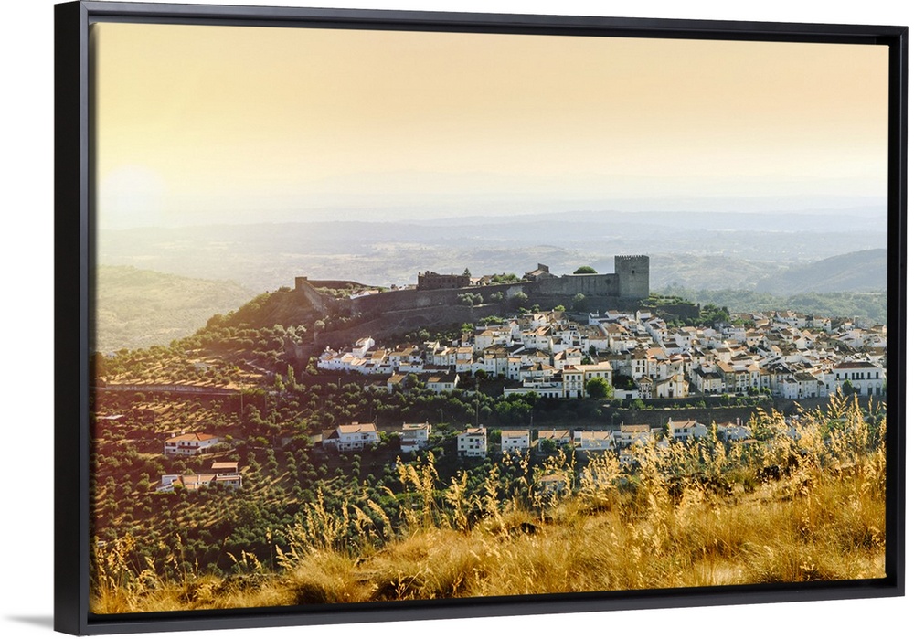 <p>Europe, Iberia, Portugal, The Alentejo, view of the fortified medieval hilltop town of Castelo de Vide topped by a castle and famous for its Jewish Quarter (Judiaria) and restored synagogue. The town was founded by the Jewish Court physician to King Pedro I, Master Lourenco</p>
