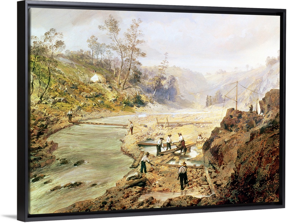 <p>XTD75546 'Fortyniners' washing gold from the Calaveres River, California, 1858 (oil on canvas); by American School, (19th century); Private Collection; American, out of copyright</p>