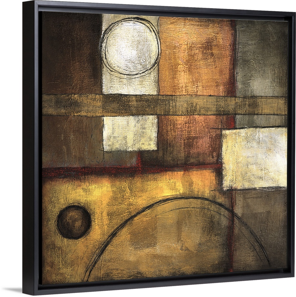 <p>Abstract painting of squared shapes, overlapped with circular elements, done in textured earth tones.</p>