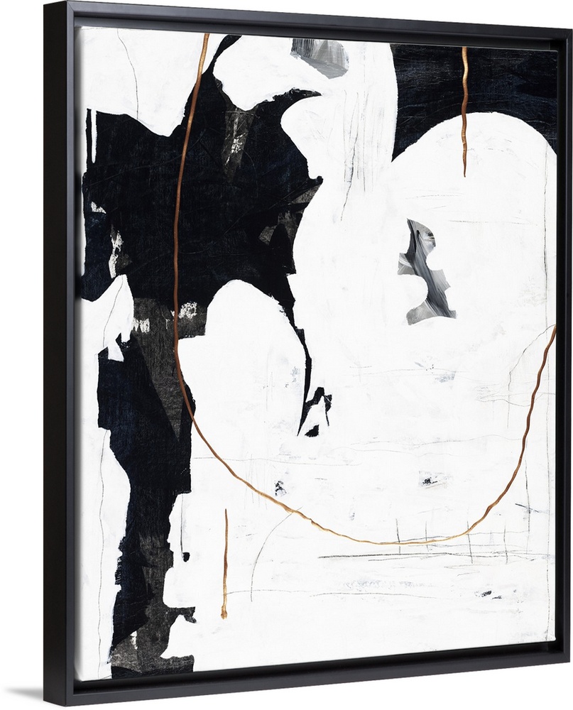 <p>Black and white abstract painting with metallic gold accents.</p>