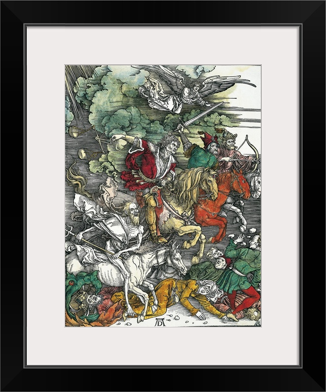 <p>DURER, Albrecht (1471-1528). Apocalypse of St. John. 1496-1498. Foiur Horsemen of the Apocalypse: Pestilence, War, Famine and Death. Xylography. ITALY. Venice. Correr Museum Library. -</p>