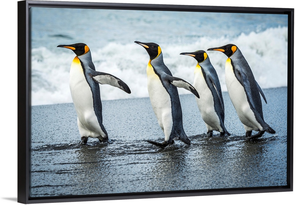 <p>Four king penguins (Aptenodytes patagonicus) walking together on beach; Antarctica</p>