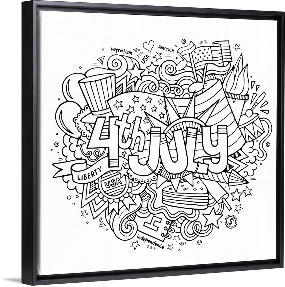 <p>Patriotic doodle celebrating the Independence Day, with United States symbols like the American Flag and the Statue of Liberty's crown. Perfect for coloring canvas.</p>