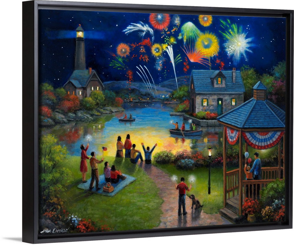 Art Contemporary Art Fireworks Holidays 4th of July Landscapes Painting Patriotic Art John Zaccheo
