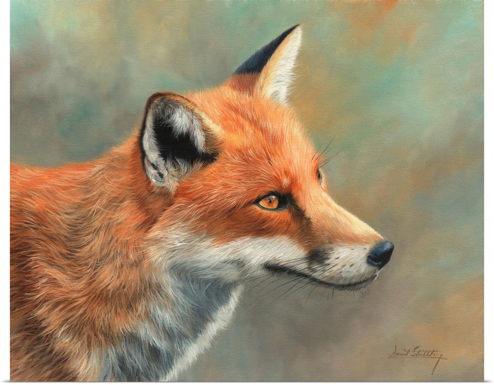 <p>Contemporary painting of a red fox looking at something curiously.</p>