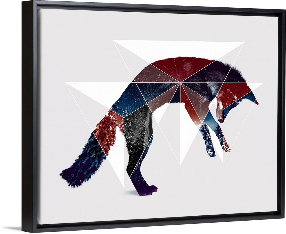 <p>Double exposure artwork of a jumping fox and triangular shapes.</p>