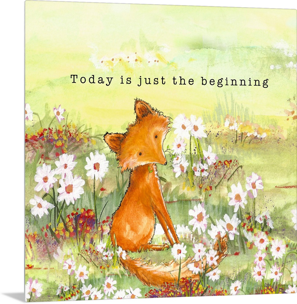 <p>Decorative children's artwork featuring an adorable fox and the words, 'Today is just the beginning'.</p>