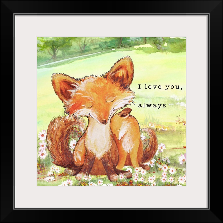 <p>Decorative children's artwork featuring two adorable foxes and the words, 'I love you, always'.</p>