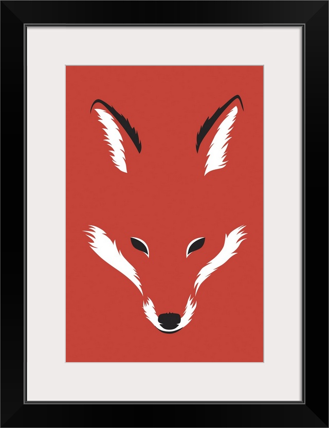 <p>Contemporary minimalist artwork of a the face of a fox in a red background.</p>