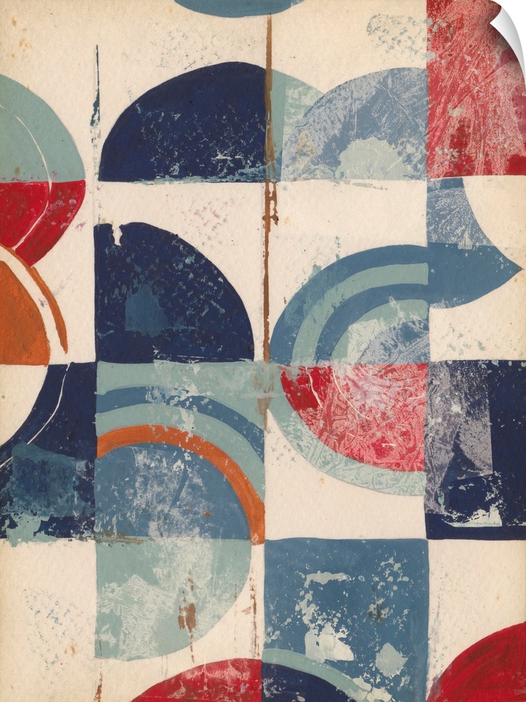 Abstract Art Mid-Century Modern Blue Wall Art Decorative Art Modern Red White and Blue Painting Melissa Wang