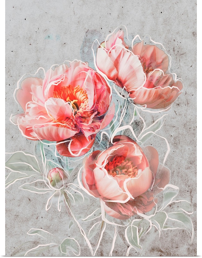 Art Contemporary and Modern Treechild Art Full Bloom Decorative Art Florals Graphic Art Grey Wall Art Pink Wall Art