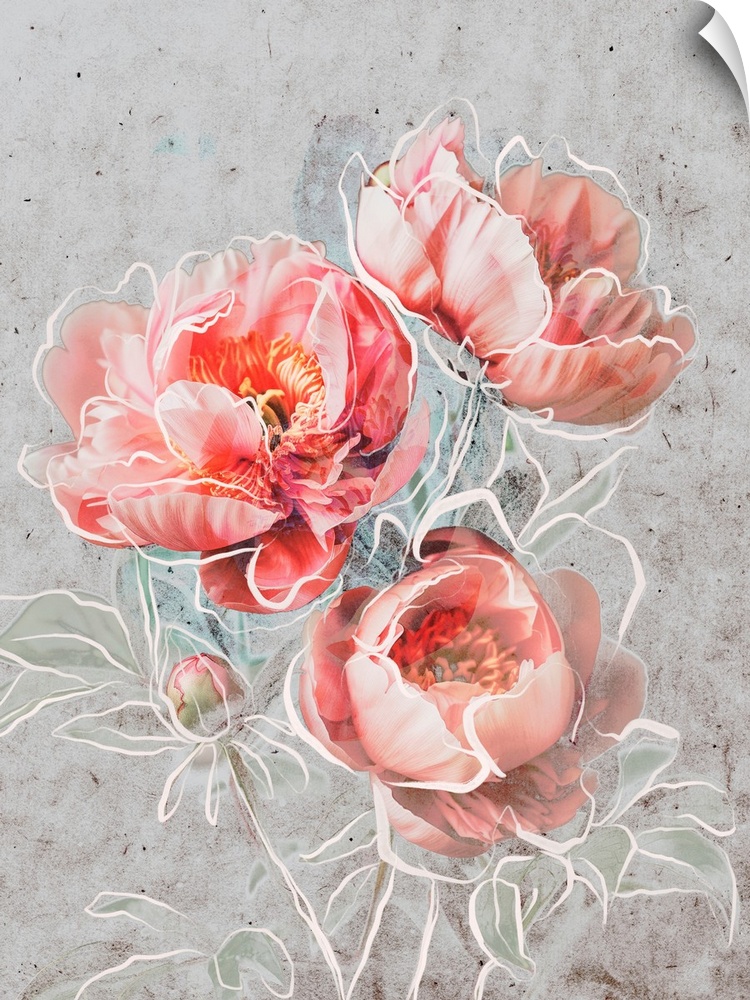 Art Contemporary and Modern Treechild Art Full Bloom Decorative Art Florals Graphic Art Grey Wall Art Pink Wall Art