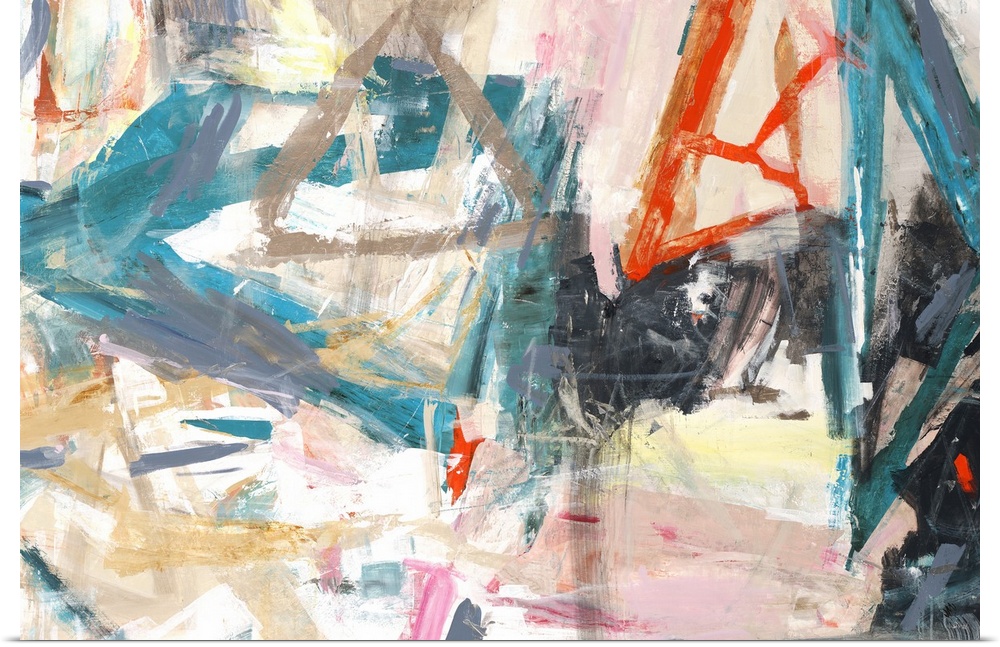 <p>Large abstract painting with angled brushstrokes created with vibrant hues all over the canvas.</p>