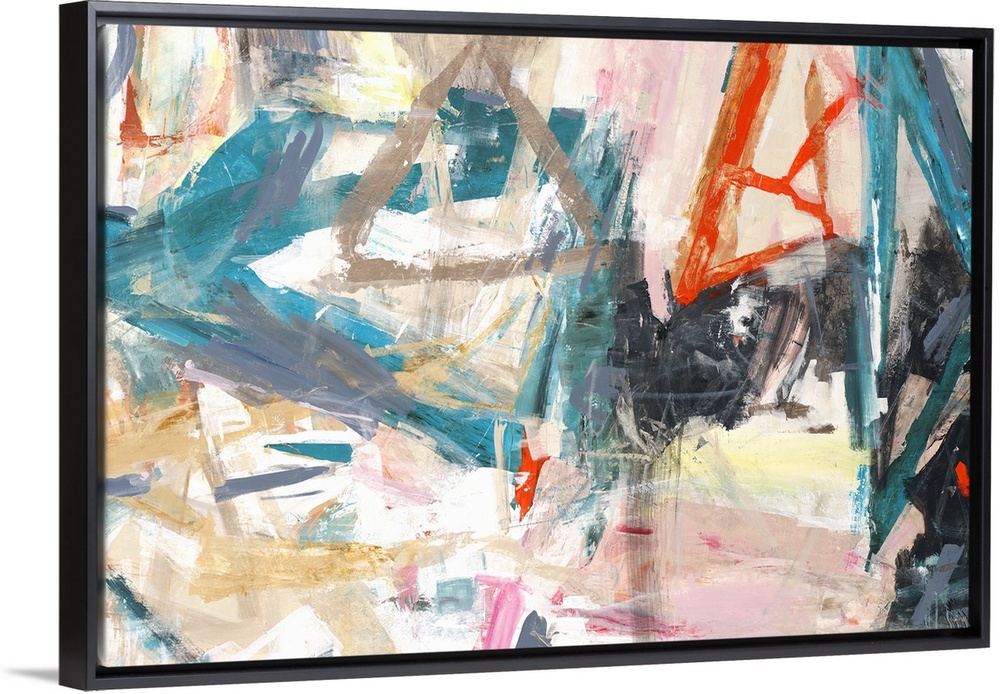 <p>Large abstract painting with angled brushstrokes created with vibrant hues all over the canvas.</p>
