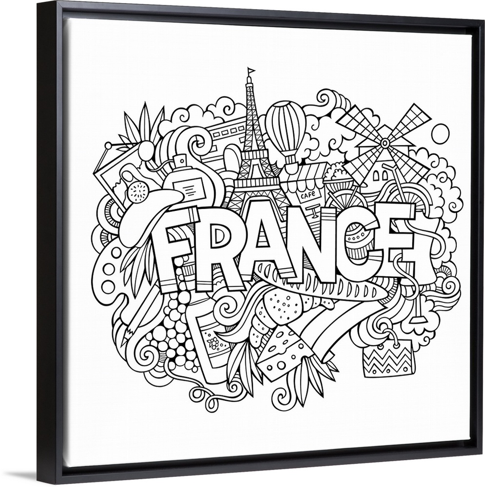 <p>Several French-themed objects, including the Eiffel Tower and pastries, surrounding the word "France."</p>