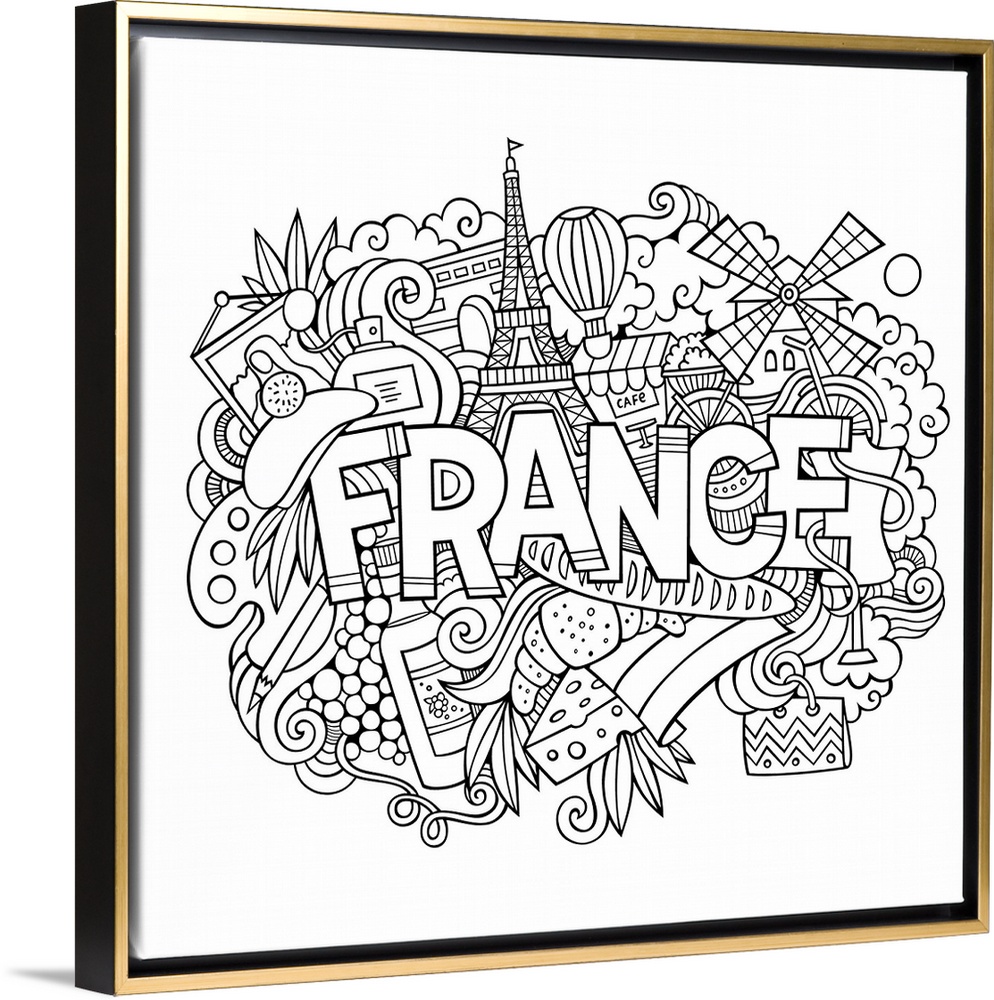 <p>Several French-themed objects, including the Eiffel Tower and pastries, surrounding the word "France."</p>