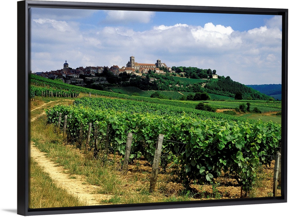 <p>Vigneti in Borgogna vicino a Vezelay (sullo sfondo). Il borgo medievale, sito dell'Unesco, . dominato dall'imponente basilica di St. Madeleine....Burgundy vineyards near Vezelay. This medieval village, Unesco site, is dominated by the impressive "Basilique de S.te Madeleine".</p>