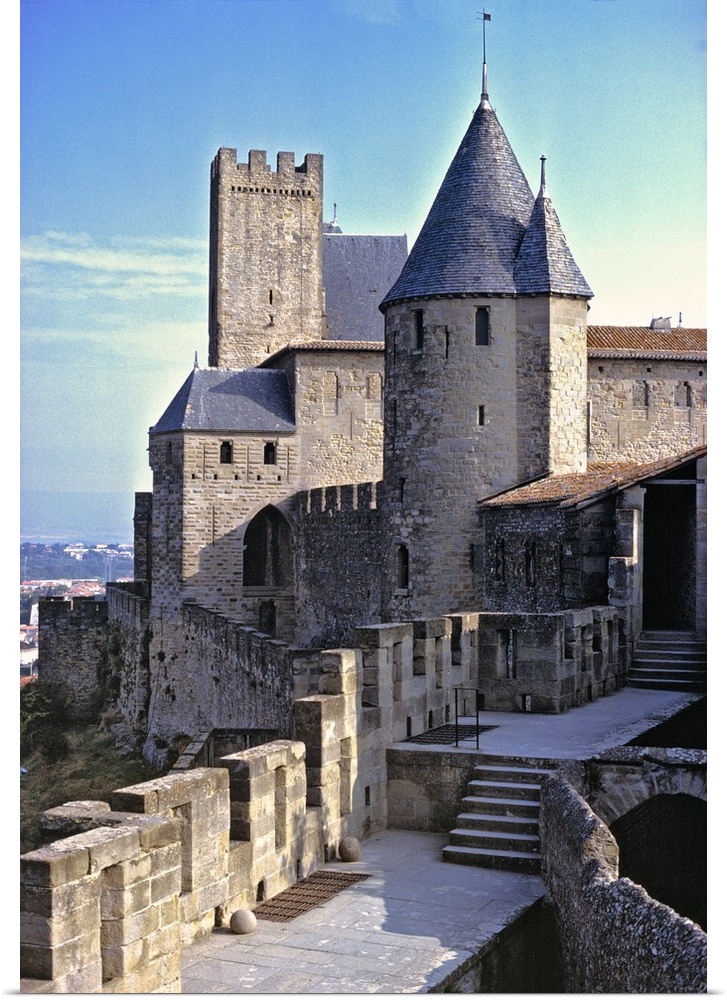 <p>Europe, France, Carcassonne. Walking the city walls in Carcassonne, Dept. Aude, France, gives views to La Cite and the countryside.</p>