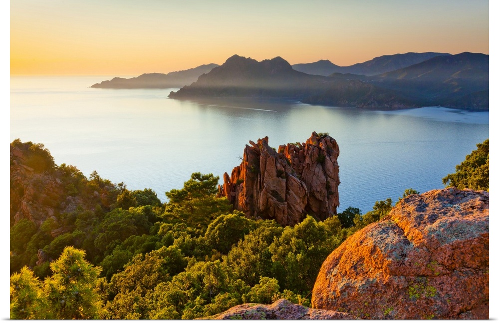 <p>France, Corsica, Mediterranean sea, Corse-du-Sud, Calanques de Piana, Typical rock formations, dusk</p>