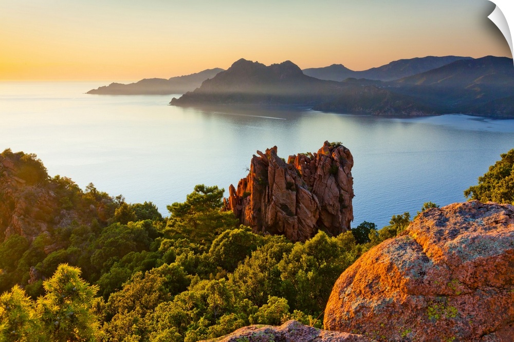 <p>France, Corsica, Mediterranean sea, Corse-du-Sud, Calanques de Piana, Typical rock formations, dusk</p>