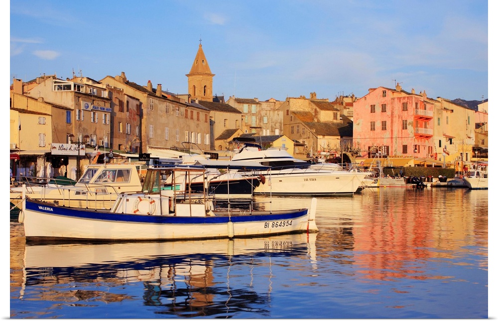 <p>France, Corsica, Saint-Florent, Mediterranean area, Mediterranean sea, Haute-Corse, Travel Destination, View of the old town and port along the harbour of the city, in the Nebbio region</p>