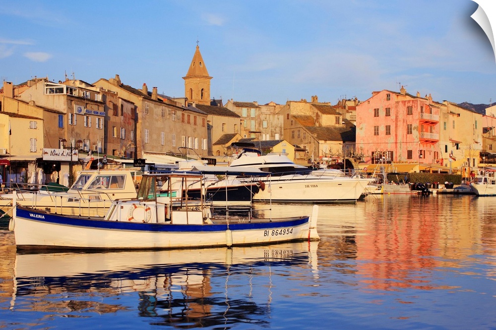 <p>France, Corsica, Saint-Florent, Mediterranean area, Mediterranean sea, Haute-Corse, Travel Destination, View of the old town and port along the harbour of the city, in the Nebbio region</p>
