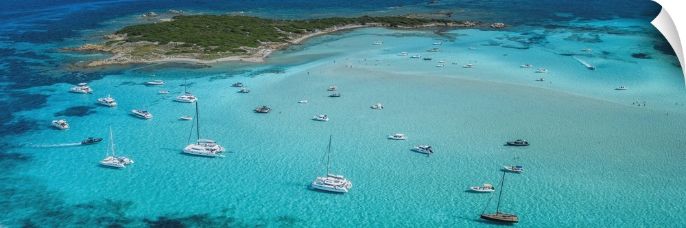 <p>France, Corsica, Mediterranean sea, Parc International Marin des Bouches de Bonifacio, Bonifacio, White sand in the blue lagoon of Piantarella beach in the Strait of Bonifacio Natural Park.</p>